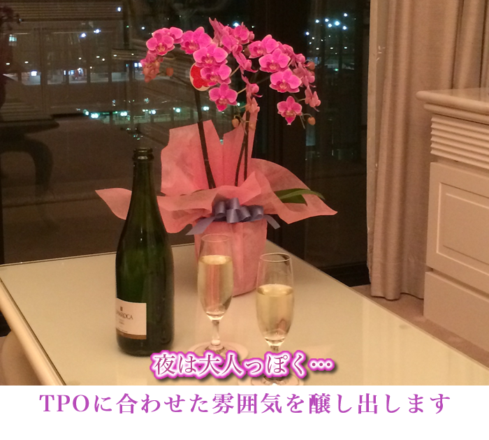 しかし胡蝶蘭。存在感は抜群で、TPOに合わせた雰囲気を醸し出します。
